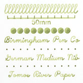 Part of the Keystone Formula fountain pen ink line, Arugula is built with traditional dye-colorants. The 50mL volume will provide approximately 62 standard converter refills assuming a 0.8mL draw. Glass bottles arrive prepared in our beautifully foiled Birmingham Pen Co. gift box.