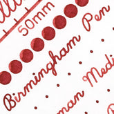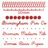 Butcher's Broom is part of the Keystone Formula fountain pen ink line, our traditional dye-colorant ink. The 50mL volume will provide approximately 62 standard converter refills assuming a 0.8mL draw. Our ink swatch is produced with a cotton swab on Tomoe River paper.