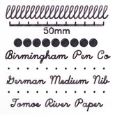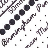 Byzantium is part of the Keystone Formula fountain pen ink line, our traditional dye-colorant ink. The 50mL volume will provide approximately 62 standard converter refills assuming a 0.8mL draw. Our ink swatch is produced with a cotton swab on Tomoe River paper.