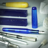 Exosphere captures the clarity and stillness of the upper atmosphere—sleek, radiant blue resin with a cool, translucent aura. Reserve this lightweight machined resin pen in our popular Sixth Avenue style, designed thick for a comfortable grip on lots of writing mileage.