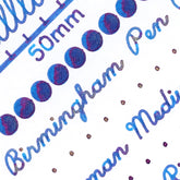 Glasswing Butterfly Twinkle features a vivid sapphire base accented with iridescent magenta sheen* when saturated on fountain-pen-friendly papers. This hue is finished with a pearlescent golden Twinkle pigment, offering a remarkable range of visual variation—from light and medium sapphire tones with golden twinkle at lean saturations, to deep sapphire with intermittent merlot sheen and golden sparkle at rich saturations.*