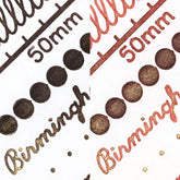 Each 90mL minimum volume will provide over 110 standard converter refills with an average 0.8mL draw. Rigid glass bottles arrive individually wrapped in cellulose wadding and prepared in a beautifully foiled gift box. Our ink color swatch and writing samples are produced on Tomoe River paper with a cotton swab and medium point grade nib.