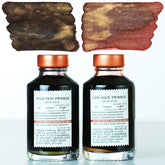 These Pennsylvania-made dye–pigment hybrid fountain pen inks arrive in thick 90mL glass bottles with lined metal caps and a copper foil-stamped gift box.