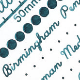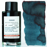 Heron is part of the Keystone Formula fountain pen ink line, our traditional dye-colorant ink. The 50mL volume will provide approximately 62 standard converter refills assuming a 0.8mL draw. Our ink swatch is produced with a cotton swab on Tomoe River paper.