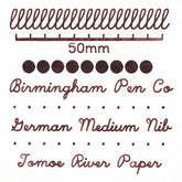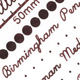 Iron Ore is part of the Keystone Formula fountain pen ink line, our traditional dye-colorant ink. The 50mL volume will provide approximately 62 standard converter refills assuming a 0.8mL draw. Our ink swatch is produced with a cotton swab on Tomoe River paper.