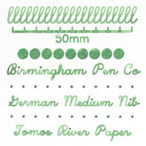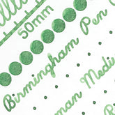 Part of the Keystone Formula fountain pen ink line, Kentucky Bluegrass is built with traditional dye-colorants. Our ink color swatch and writing sample are produced on Tomoe River paper with a cotton swab and medium point grade nib. The 50mL volume will provide approximately 62 standard converter refills assuming a 0.8mL draw. Glass bottles arrive prepared in our beautifully foiled Birmingham Pen Co. gift box.