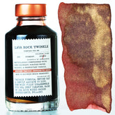 Named for the igneous rock formed from rapidly cooled magma, Lava Rock Twinkle flows across the page with a basaltic red that shifts to a shadowy iron ore in saturation on fountain pen friendly paper. Lava Rock is enriched by a finely dispersed golden shimmer shown like mineral crystallization along cooling fractures.