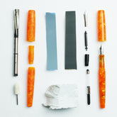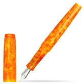 Mandarin Marmalade is pure citrus energy—bold orange resin marbled with golden undertones, each piece radiates like a spoonful of sunshine. Reserve this lightweight machined resin pen in our popular Sixth Avenue style, designed thick for a comfortable grip on lots of writing mileage.