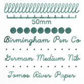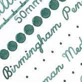 Pitted Nickel is part of the Keystone Formula fountain pen ink line, our traditional dye-colorant ink. The 50mL volume will provide approximately 62 standard converter refills assuming a 0.8mL draw. Our ink swatch is produced with a cotton swab on Tomoe River paper.